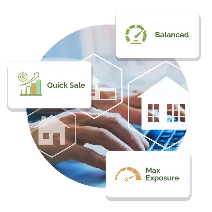 (Quick / Balanced / Max Exposure with days-on-market)