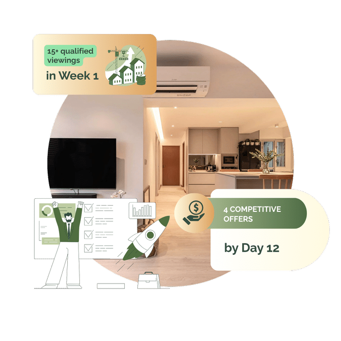 10+ viewings/week sustained. Buyer FAQs auto-sent post-viewing. Early terms aligned to seller’s timeline.
